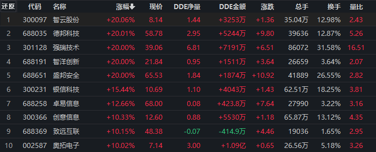 行業(yè)方面,截至8月30日上午收盤,電子化學(xué)品、半導(dǎo)體及元件、其他電子、計(jì)算機(jī)應(yīng)用、通信服務(wù)等行業(yè)漲幅居前。證券、環(huán)保、養(yǎng)殖業(yè)等跌幅居前。熱點(diǎn)方面,華為概念漲1.84%,板塊內(nèi)智云股份、德邦科技、強(qiáng)瑞技術(shù)、智洋創(chuàng)新、盛邦安全紛紛20CM漲停;奧拓電子、捷榮技術(shù)、拓維信息10CM漲停。