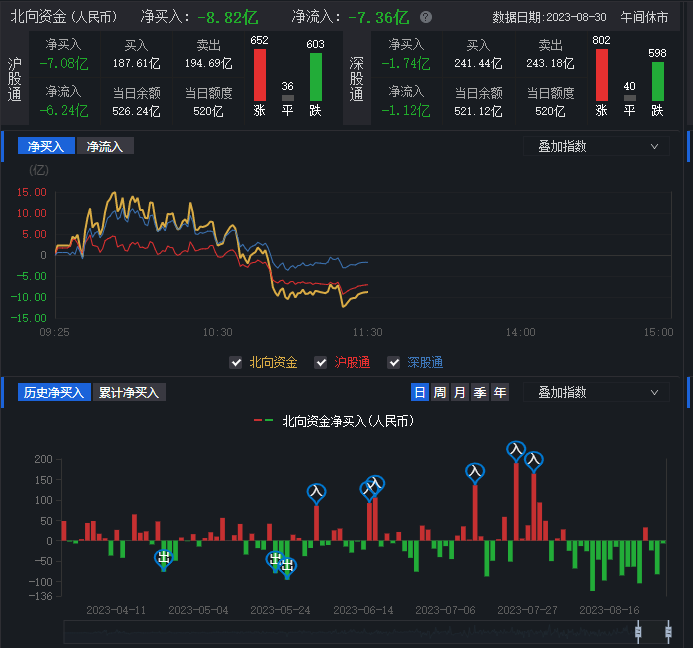 從資金面來看,8月30日上午,北向資金凈賣出8.82億元。另外,截至8月29日,滬深北三市的兩融余額合計(jì)15718.22億元,較前一交易日增加60.47億元。其中,融資余額合計(jì)14786.92億元,較前一交易日增加30.68億元;融券余額為931.30億元,較前一交易日增加29.79億元。