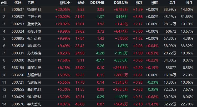 具體看,截至9月6日上午收盤,光刻膠板塊持續(xù)走強(qiáng),漲幅居首達(dá)4.26%。其中,多只概念股集體漲停,揚(yáng)帆新材、廣信材料、藍(lán)英裝備等概念股均達(dá)20CM漲停,盛劍環(huán)境、張江高科等個股也紛紛漲停。