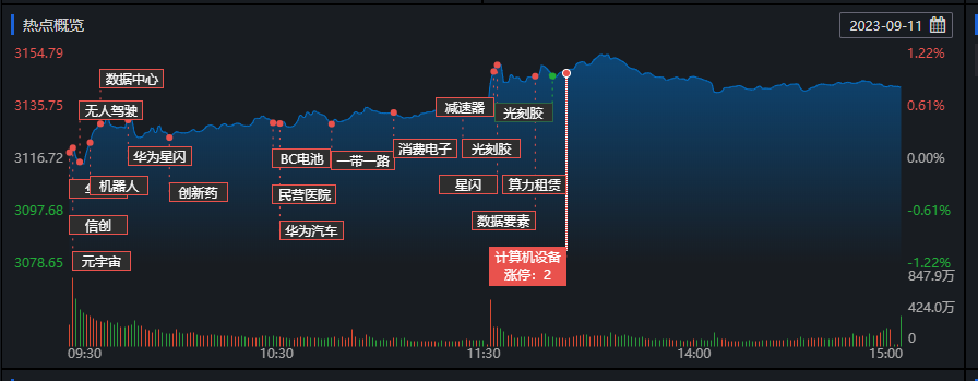 卜益力認為,前方套牢盤壓力較大,因此預期市場還會反復震蕩,后期需要關注成交量能否配合指數上攻。近期華為新機發布,帶動了華為概念股、光刻機等相關板塊的反彈,同時調整已久的AI板塊今日也出現了反彈。近期市場的主線無疑是大科技方向,因此建議后續重點關注大科技方向。