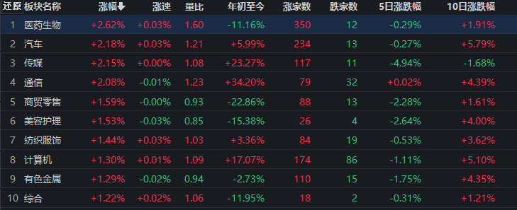 醫藥生物漲2.62%