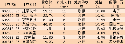 表:今日以漲停價報收且連續上漲3日以上的個股一覽