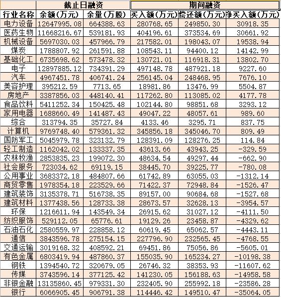 表:9月19日申萬一級行業兩融交易情況: