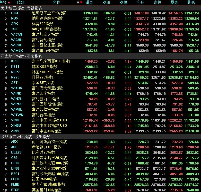 周五,美國三大股指全線收跌,道指跌0.31%報33963.84點,標普500指數跌0.23%報4320.06點,納指跌0.09%報13211.81點。本周,道指跌1.89%,標普500指數跌2.93%,納指跌3.62%。