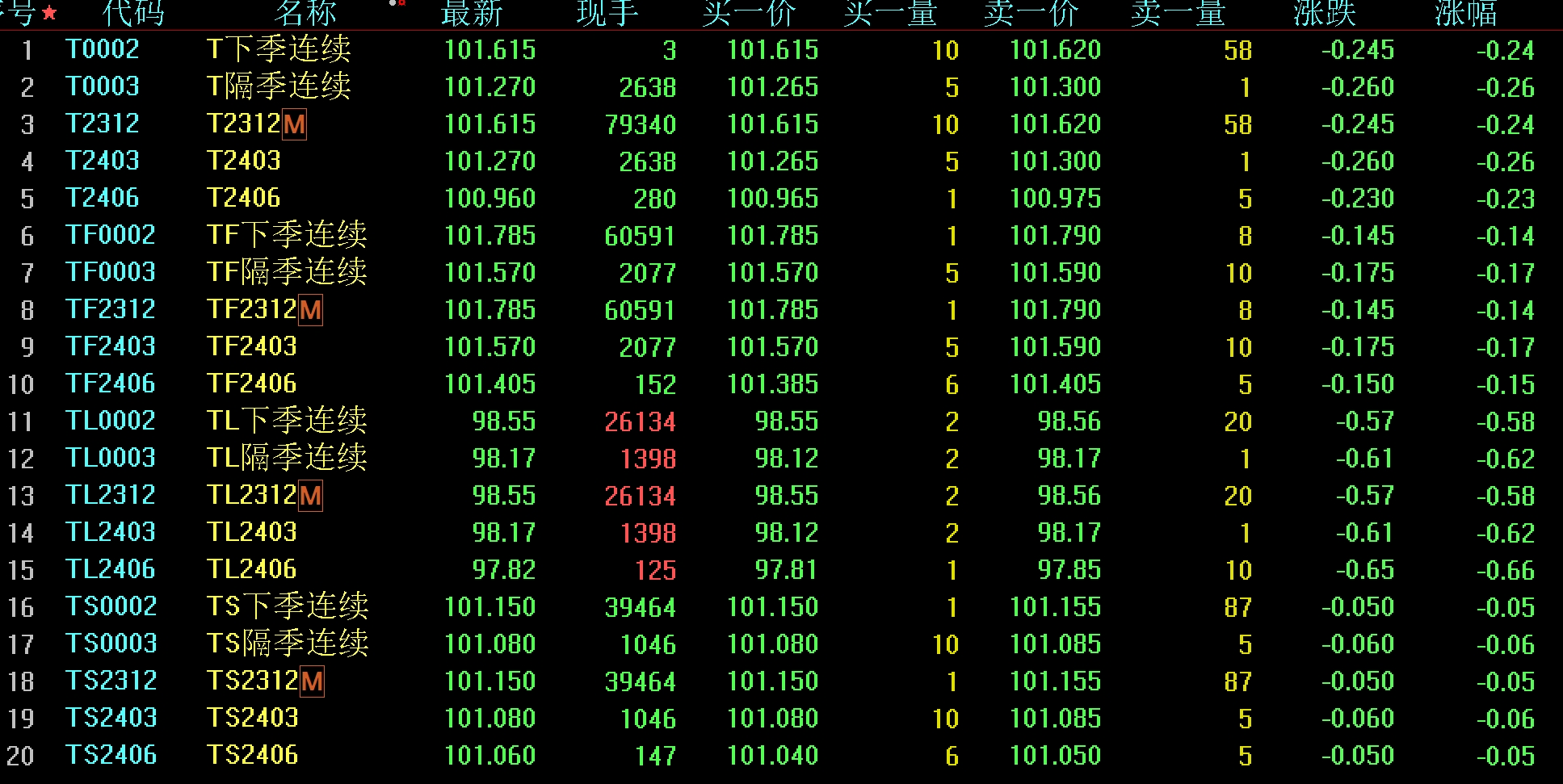 周五,國債期貨全線收跌,30年期主力合約跌0.58%,10年期主力合約跌0.24%,5年期主力合約跌0.14%,2年期主力合約跌0.05%。