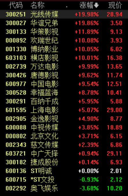具體來看,影視院線板塊領(lǐng)漲,光線傳媒、華誼兄弟、歡瑞世紀(jì)等6只個(gè)股漲停,板塊內(nèi)18只個(gè)股上漲。消息面上,《哪吒之魔童鬧海》進(jìn)入全球影史票房榜前20名;白酒板塊盤初拉升,板塊內(nèi)20只個(gè)股上漲;電池、養(yǎng)殖業(yè)、軟件開發(fā)等板塊表現(xiàn)活躍。電機(jī)板塊領(lǐng)跌。
