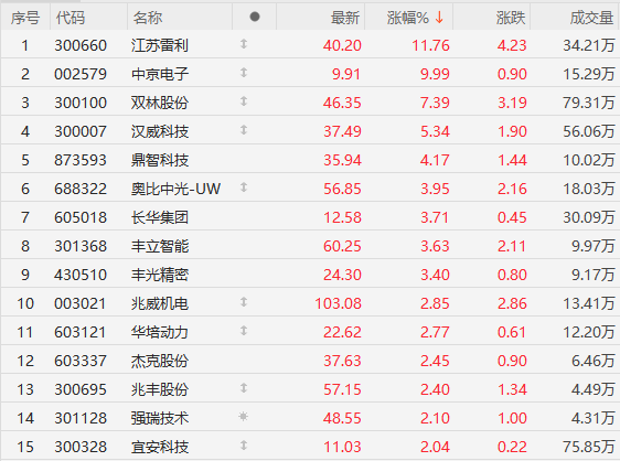 6月19日,人形機(jī)器人概念股盤(pán)中發(fā)力,多股漲幅居前。截至收盤(pán),中京電子(002579)漲停,江蘇雷利(300660)漲超11.76%,雙林股份(300100)、漢威科技(300007)漲超5%。