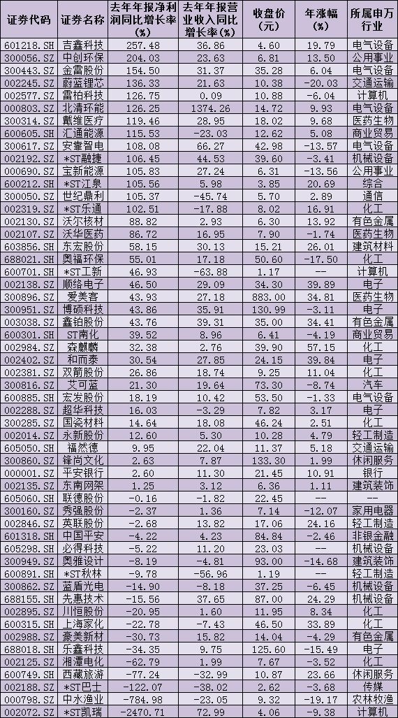 《證券日報》根據同花順統計發現,截至3月1日收盤,滬深兩市已有54家公司披露了2020年年報業績。其中,36家公司歸屬母公司凈利潤實現同比增長,占比66.67%。其中,包括吉鑫科技、金雷股份、蔚藍鋰芯、雷柏科技、戴維醫療、安靠智電、寶新能源等在內的14家公司,年報凈利潤同比增幅均超100%。