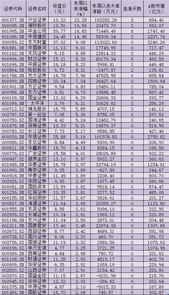 表:本周以來券商股市場(chǎng)表現(xiàn)一覽