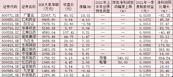 在政策紅利不斷釋放的背景下,中藥行業上市公司盈利進一步提升。同花順數據統計發現,在94家中藥行業上市公司中,今年一季度實現凈利潤同比增長的公司共有74家,占比近八成。截至目前,已有21家中藥行業上市公司披露了2021年上半年業績預告,19家公司業績預喜,占比逾九成。