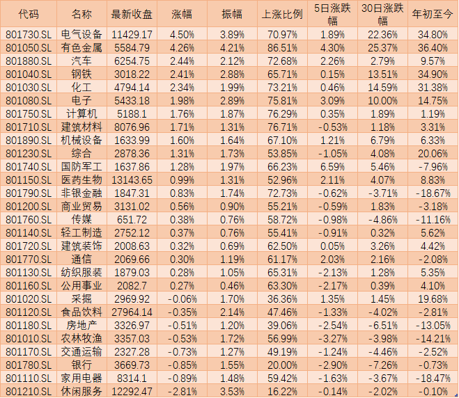 表:周三申萬一級行業市場表現一覽