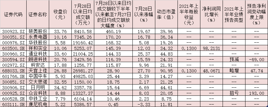 表:7月28日以來日均成交額實現增長的運輸設備股一覽