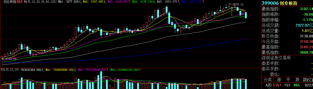 A股市場:上周(8月30日-9月3日,下同),A股三大指數(shù)漲跌互現(xiàn)。上證指數(shù)周漲幅1.69%,報3581.73點;深證成指周跌幅1.78%,報14179.86點;創(chuàng)業(yè)板指周跌幅4.76%,報3102.14點。