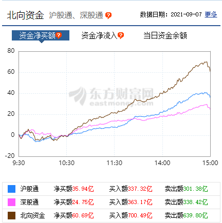 此外,北向資金全天凈買入60.69億元,為連續12日凈買入,追平年內最長連續凈買入紀錄,合計凈買入553.69億元。