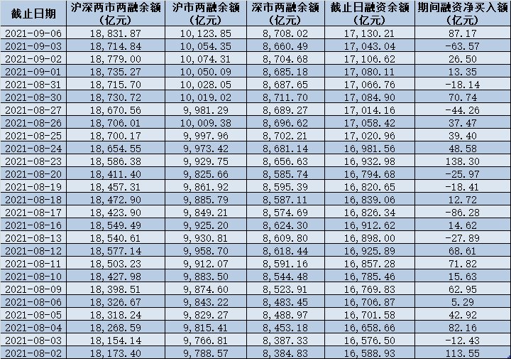 可以看到,截至9月6日,滬深兩市兩融余額報18831.87億元,再度刷新近6年高點。