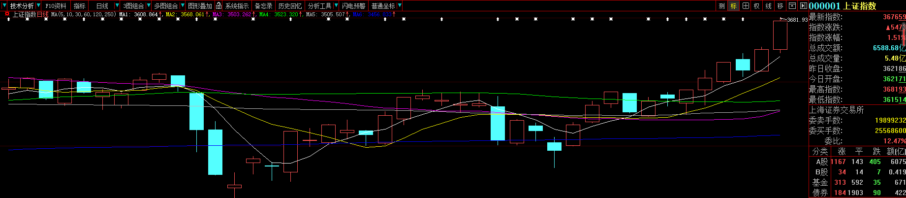 3681.93點!大藍籌集體發力,拉動滬指漲幅持續擴大,周二(9月7日)盤中創半年來新高。