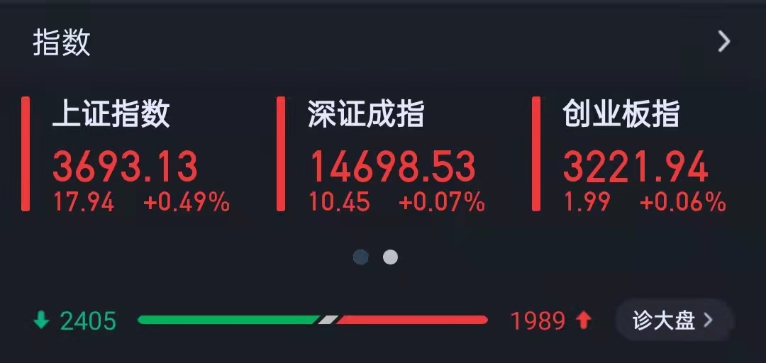周四(9月9日),A股三大指數尾盤回暖,集體收漲,截至收盤,上證指數漲0.49%,報3693.13點;深證成指漲0.07%,報14698.53點;創業板指漲0.06%,報3221.94點;滬深兩市合計成交額14321.55億元,連續第37個交易日突破1萬億元。