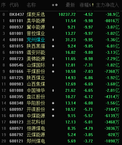 周期股繼續回落,煤炭采選帶頭,鋼鐵、貴金屬居二三位。煤炭采選下跌4.52%,個股方面,寶泰隆、金能科技和ST平能上漲,其余個股均出現下跌,有三只個股跌停。