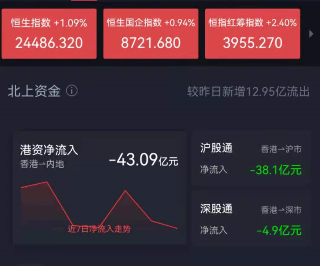 恒生指數(shù)收漲1.19%,恒生科技指數(shù)漲0.93%。電力股全線走高,華電國際漲超16%,中國電力漲近16%,華潤電力漲超14%。紙業(yè)股普漲,晨鳴紙業(yè)漲近18%,陽光紙業(yè)漲逾10%,玖龍紙業(yè)漲近10%。地產(chǎn)股反彈,中國恒大漲17.62%,龍湖集團(tuán)漲近10%,融創(chuàng)中國漲超9%。