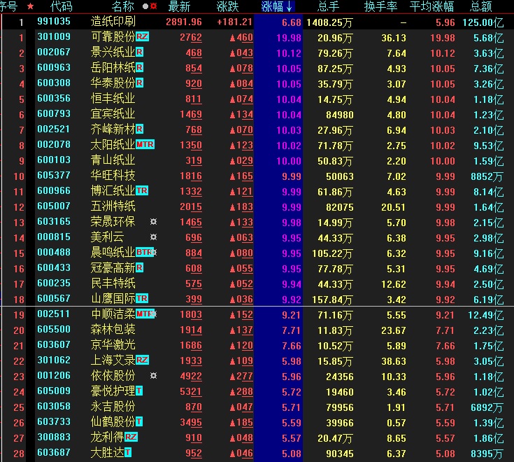 周四,市場熱點(diǎn)紛呈,再現(xiàn)兩級分化格局。造紙板塊異軍突起,掀漲停潮,環(huán)保、地產(chǎn)、華為鴻蒙概念也漲幅居前。
