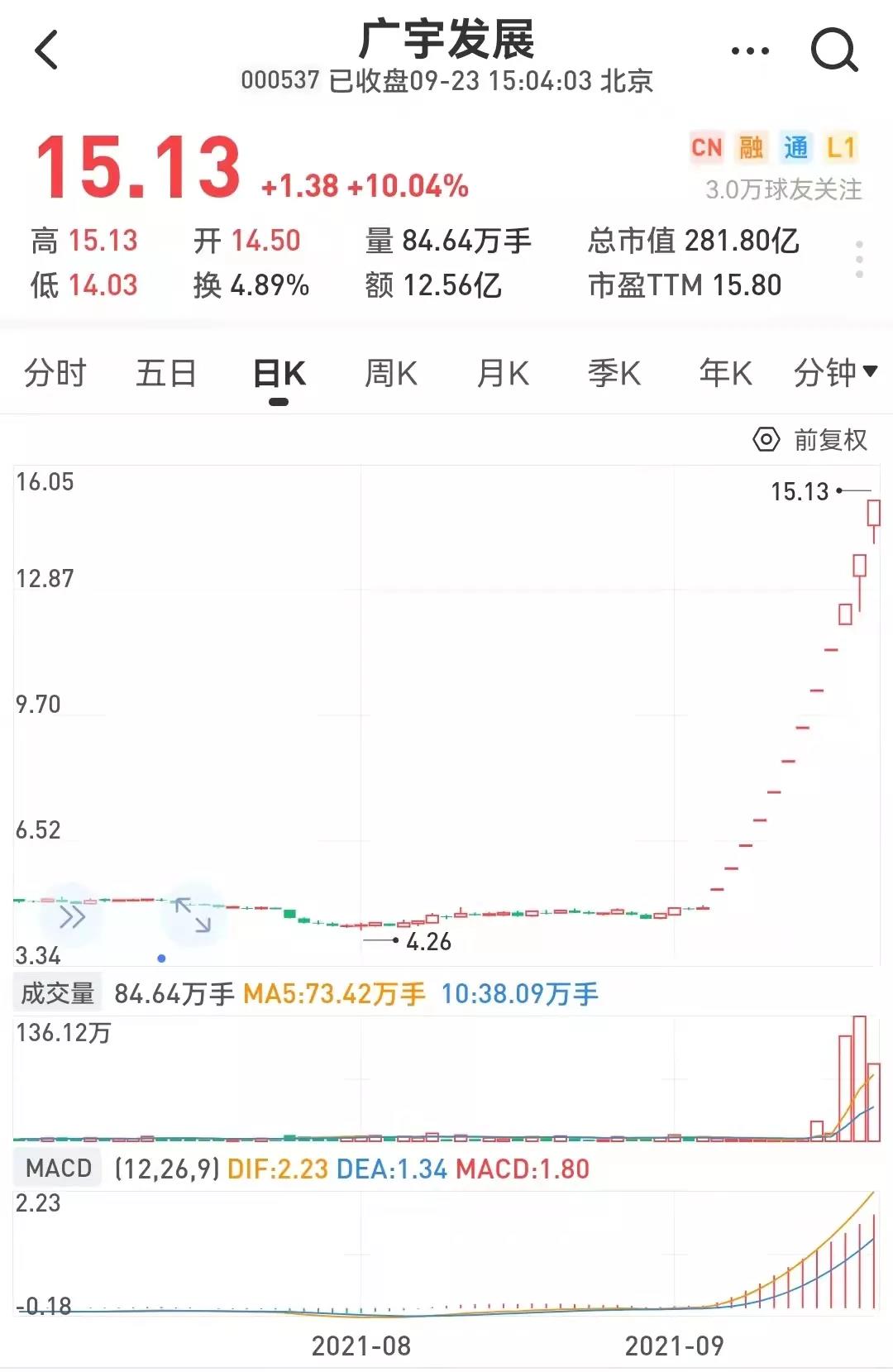 周四,地產(chǎn)股大爆發(fā),板塊漲幅達(dá)2.15%,7只地產(chǎn)股收于漲停,其中,受重大資產(chǎn)重組利好的廣宇發(fā)展已連續(xù)12個(gè)交易日漲停,期間漲幅達(dá)213.90%。與此同時(shí),港股市場上,地產(chǎn)建筑板塊領(lǐng)漲,中國恒大一度漲逾32%,碧桂園服務(wù)、融創(chuàng)中國盤中漲幅均超過10%,龍湖集團(tuán)、中國海外發(fā)展、碧桂園、世茂集團(tuán)均大幅上漲。
