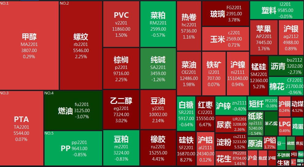 10月19日,國內商品期貨大面積飄紅,硅鐵主力合約漲逾8%,紅棗主力合約漲逾6%;動力煤尾盤跳水,豆油上破10000元整數位關口。20號膠(NR)、錳硅、淀粉、主力合約漲逾5%,焦炭、橡膠主力合約漲逾4%。截至收盤,動力煤漲4.52%,報1835.6元;豆油漲2.14%,報10002元。