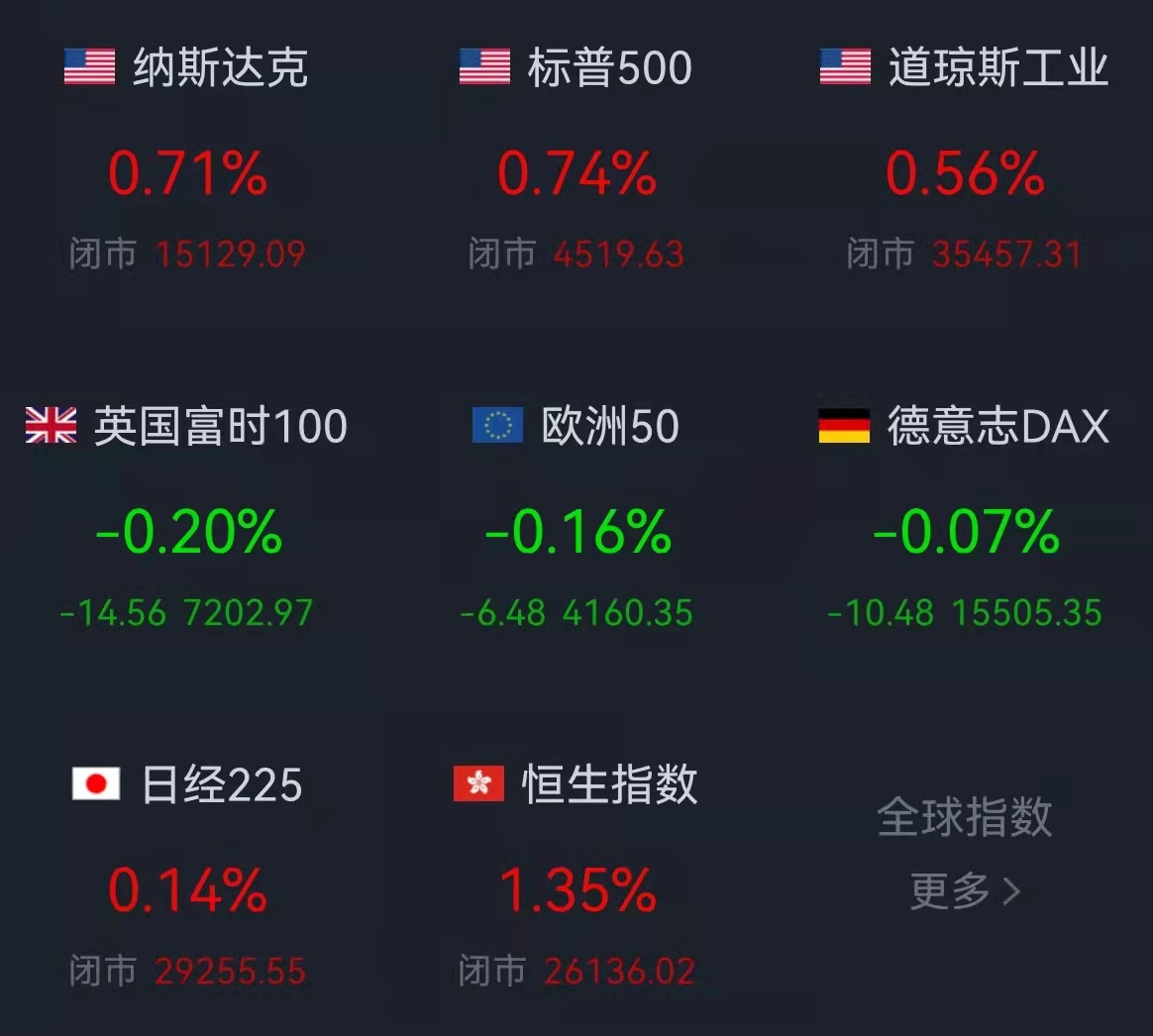 港股:恒指漲1.35%資訊科技板塊領(lǐng)漲