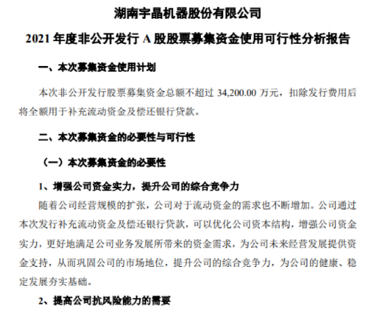 11月15日,宇晶股份公布,擬非公開發行股票數量不超過2000萬股,募集資金總額不超過3.42億元(含發行費用),扣除發行費用后用于補充流動資金及償還銀行貸款。