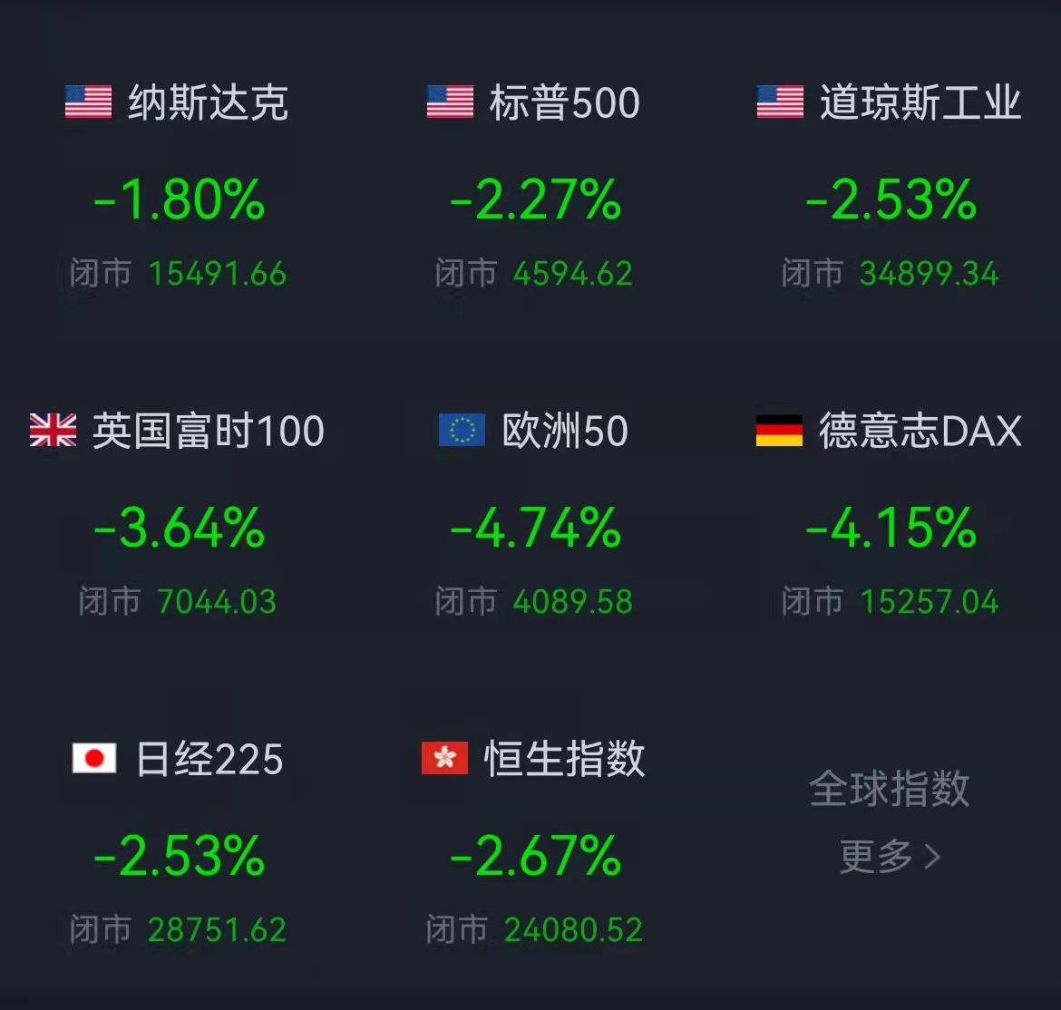 周五,歐股收盤全線重挫。本周,德國(guó)DAX指數(shù)跌5.59%,法國(guó)CAC40指數(shù)跌5.24%,英國(guó)富時(shí)100指數(shù)跌2.49%。