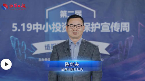 從今天開始,證券日報社聯合中證中小投資者服務中心共同舉辦的第二屆"519中小投資者保護宣傳周"就正式啟動了。受新冠肺炎疫情影響,今年的活動在線上舉行。期間,證券日報將上線投訴平臺,我們希望把這一平臺打造成連接各方的紐帶,為廣大投資者保駕護航。