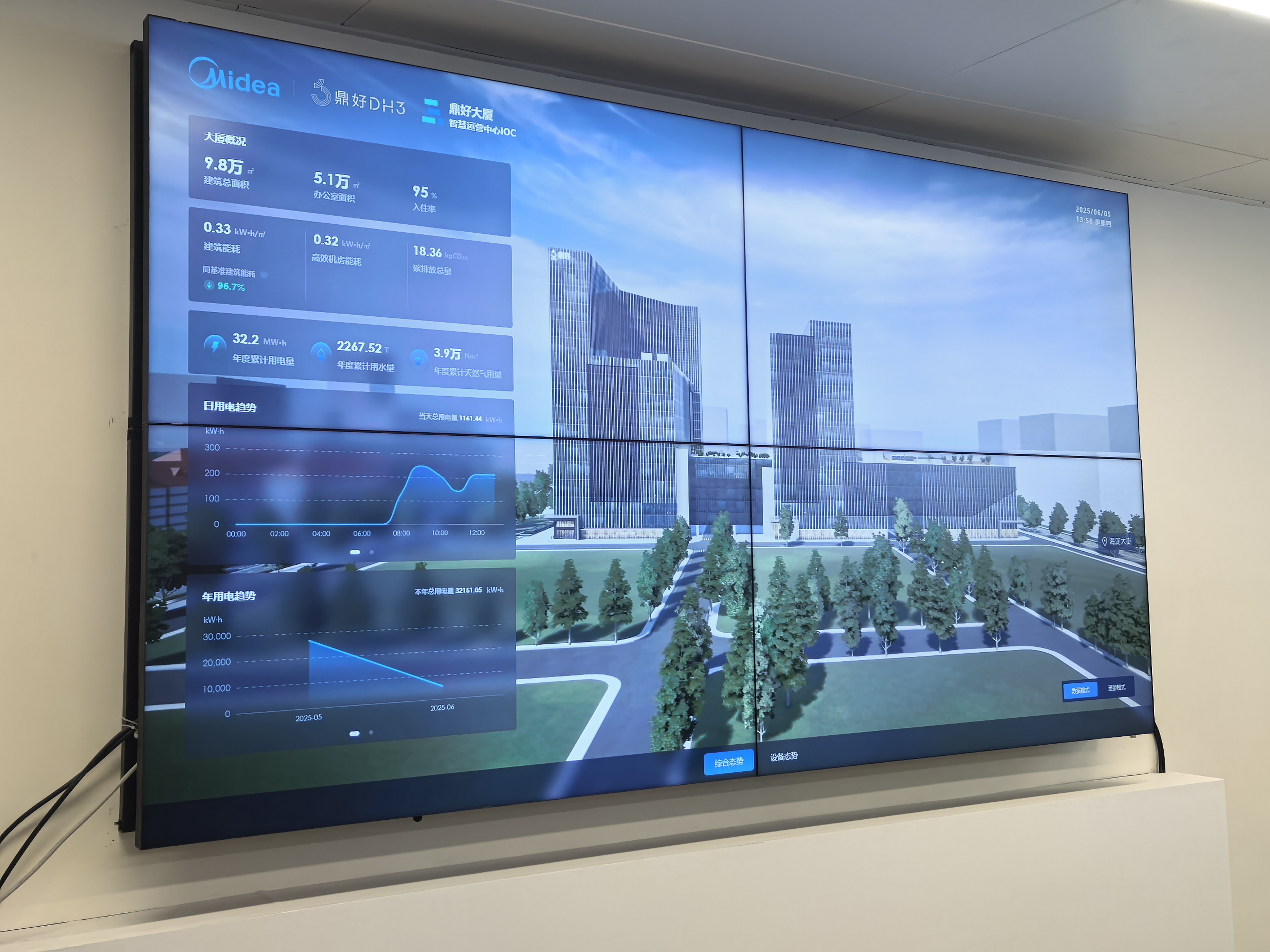 他透露,美的樓宇科技還為大樓提供了高效運維服務。通過使用自研的虛擬運維平臺,現場調試周期降低了70%,人力成本減少了80%。這種“硬件+軟件”的全方位升級,使得鼎好DH3每年節約電量約100萬度,減少碳排放約800噸。