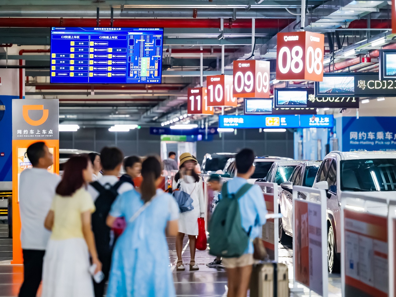 圖組為:游客可在滴滴候車區(qū)和上車點(diǎn)查看中英雙語的滴滴出行打車指南