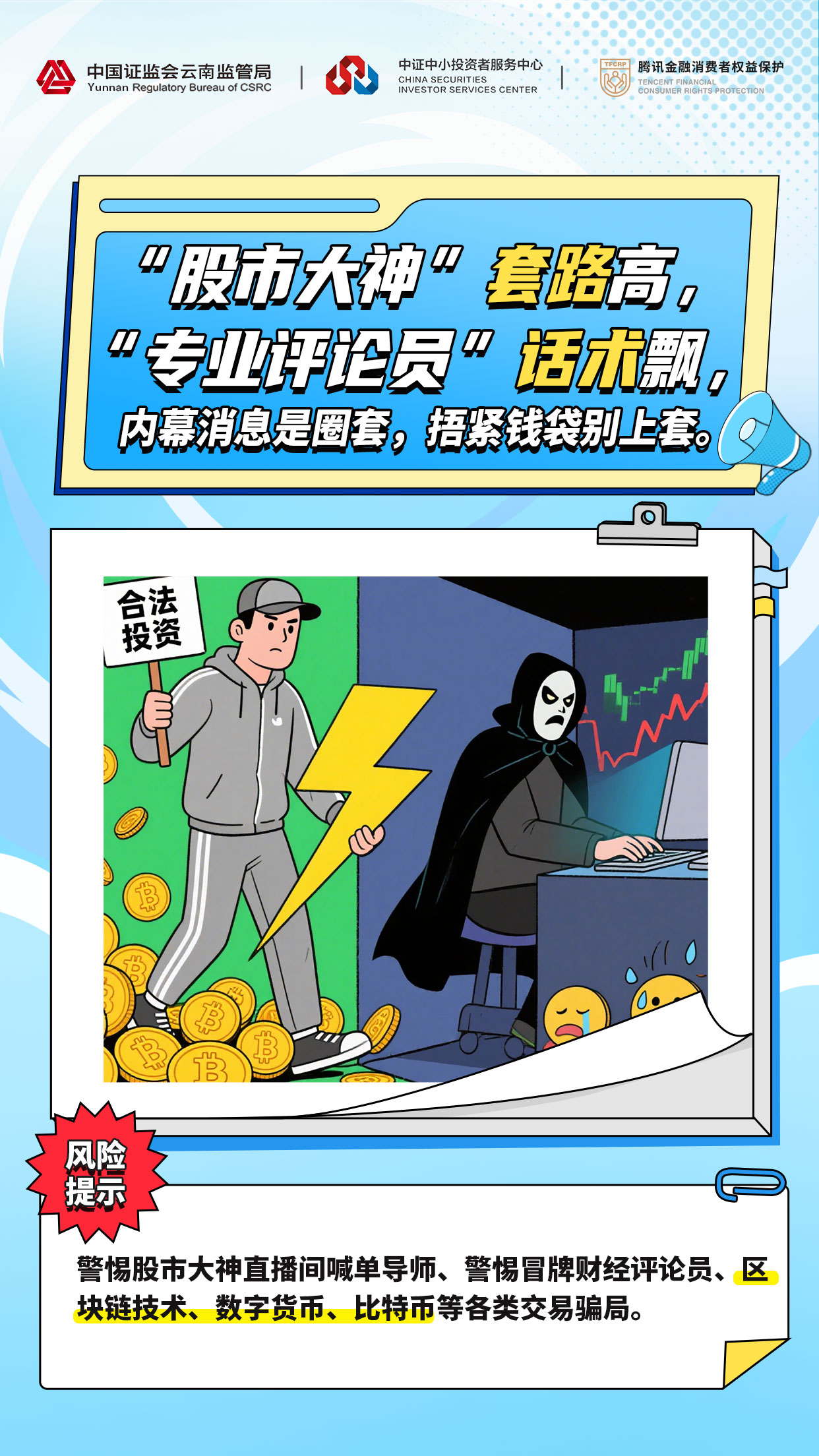 今天,云南片區提醒您:“股市大神”套路高,“專業評論員”話術飄,內幕消息是圈套,捂緊錢袋別上套。
