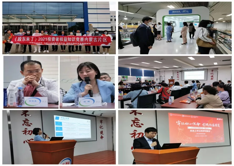 為進(jìn)一步引導(dǎo)和規(guī)范上市公司的投資者關(guān)系管理,切實(shí)保護(hù)投資者尤其是中小投資者的合法權(quán)益,推動(dòng)投資者樹(shù)立股東意識(shí),不斷增強(qiáng)行使股東權(quán)利的主動(dòng)性,樹(shù)立理性投資、價(jià)值投資的理念,值此“5·15全國(guó)投資者保護(hù)宣傳日”暨內(nèi)蒙古片區(qū)《股東來(lái)了》2021投資者權(quán)益知識(shí)競(jìng)賽開(kāi)賽之際,內(nèi)蒙古證監(jiān)局、上海證券交易所、內(nèi)蒙古證券期貨業(yè)協(xié)會(huì)聯(lián)合國(guó)融證券股份有限公司于2021年5月18日帶領(lǐng)中小投資者走進(jìn)上市公司——內(nèi)蒙古伊利實(shí)業(yè)集團(tuán)股份有限公司(以下簡(jiǎn)稱伊利集團(tuán)),參觀了伊利集團(tuán)總部、草原乳文化博物館、液態(tài)奶生產(chǎn)車(chē)間,并就投資者所關(guān)注的相關(guān)問(wèn)題與伊利集團(tuán)高管進(jìn)行面對(duì)面互動(dòng)交流。