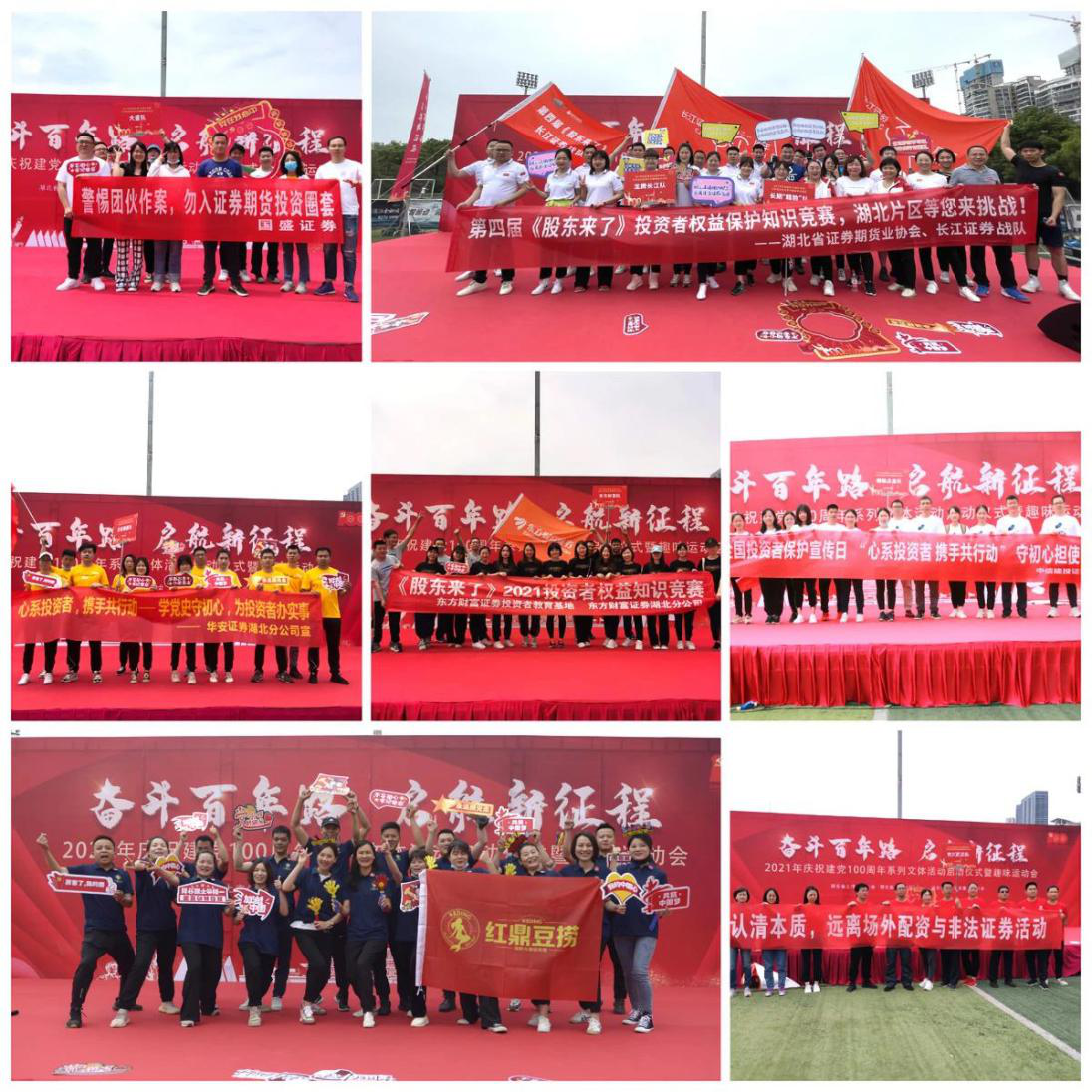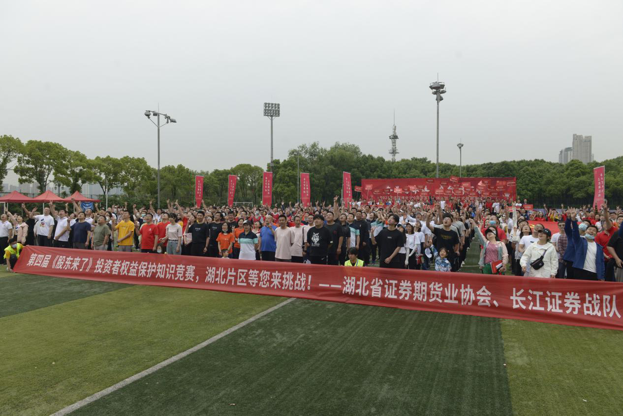 由投服中心與廣東、四川、湖北、內(nèi)蒙古、海南、西藏證監(jiān)局聯(lián)合主辦的《股東來(lái)了》2021投資者權(quán)益知識(shí)競(jìng)賽正如火如荼開(kāi)展。日前,《股東來(lái)了》2021湖北片區(qū)通過(guò)體育文化活動(dòng),集中宣傳黨的歷史和新時(shí)代的科學(xué)主張,搭建會(huì)員合作交流之橋,湖北省證券期貨業(yè)協(xié)會(huì)聯(lián)合湖北省上市公司協(xié)會(huì)、湖北省證券投資基金業(yè)協(xié)會(huì)在武漢江灘足球場(chǎng)成功舉辦2021年慶祝建黨100周年系列文體活動(dòng)啟動(dòng)儀式暨《股東來(lái)了》2021湖北片區(qū)趣味運(yùn)動(dòng)會(huì)。來(lái)自省內(nèi)證券公司、上市公司、基金公司以及湖北證監(jiān)局、協(xié)會(huì)的41支代表隊(duì),共計(jì)550余人參與本次活動(dòng)。
