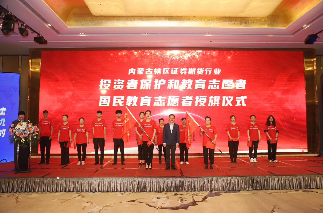 活動過程中,內蒙古證券期貨行業投資者保護和教育志愿者、國民教育志愿者代表接受授旗并集體宣誓。該志愿者隊伍主要由教師、學生、社區居民、機構從業人員等組成,覆蓋內蒙古自治區12盟市,標志著轄區投資者保護“大格局”日趨完善,投資者教育成果漸入人心。
