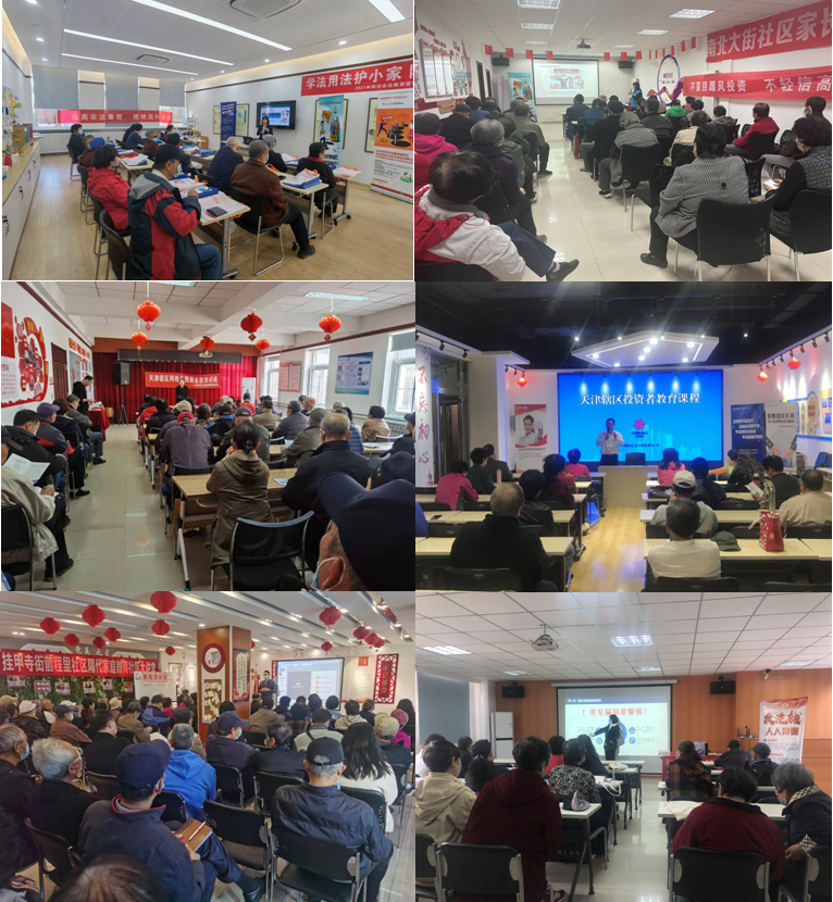 此階段宣傳活動以河西區各街道黨群服務中心及居家養老服務中心為工作圓心,以點帶面,從線到片,形成區域效應。通過懸掛宣傳條幅、樹立宣傳易拉寶、張貼宣傳海報等方式營造宣傳氛圍;通過專業講師授課、發放宣傳彩頁,播放防范非法集資視頻等方式開展宣傳,引導大家熟知正確投資理財相關常識,幫助廣大群眾識別投資理財常見誤區,樹立正確投資理財觀念,提高風險防范意識和能力。