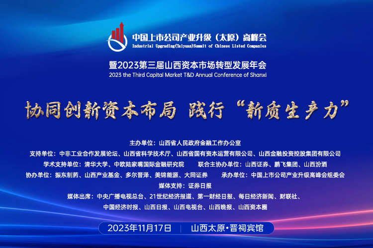本次中國上市公司產業升級(太原)高峰會在太原舉辦,將探討與研究如何推動全方位高質量發展、奮力實現產業升級與轉型目標,有助于傳承與創新晉商精神,加快我省產業轉型升級,引領黃河流域綠色金融科技高質量發展,打造山西綠色金融資本市場新名片...詳細>>